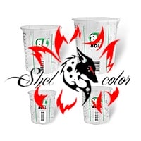 Универсальный контейнер с крышкой из прозрачного пластика с напечатанной градуировкой, позволяющей смешать смесь с точными пропорциями.