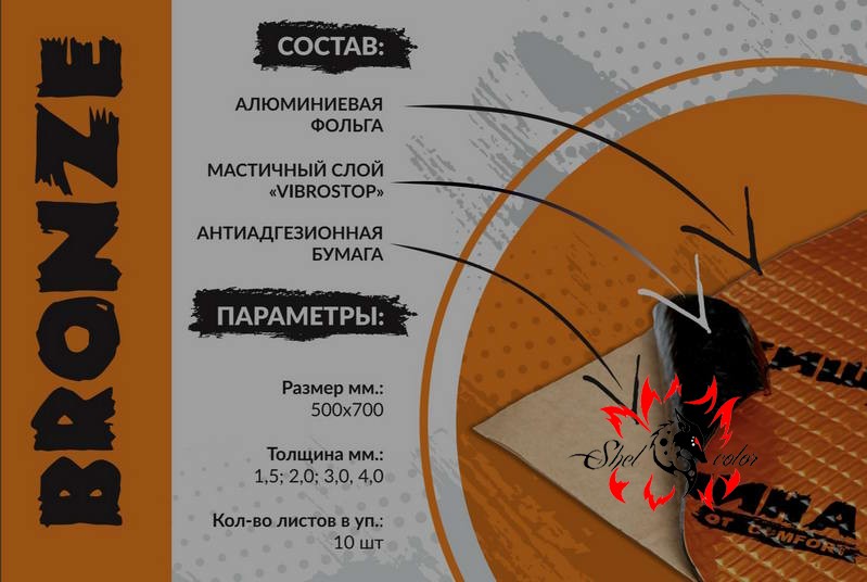 Comfort mat Тишина Виброизоляционный материал BRONZE M2, толщина 2мм, лист 500х700мм