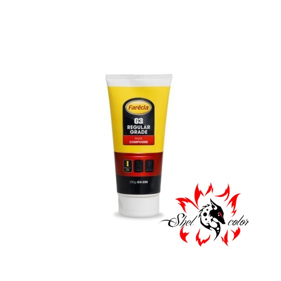 FARECLA G3 250 гр Полировочная паста абразивная Relar grade - среднеабразивная универсальная полироль. Придаёт яркий блеск и гладкость любой поверхности. Применяется как для свежих, так и для старых покрытий автомобиля. Требует применения в работе добавление воды, для предохранения от пересушивания. Легкость в использованиии полироли явлеется большим преимуществом как для профессионалов, так и новичков.