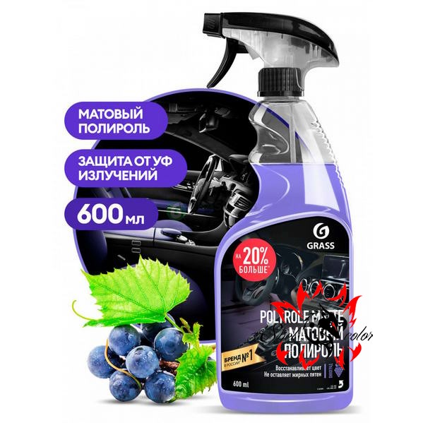 Матовый полироль Grass "Polyrole Matte" предназначен для обработки приборных панелей, неокрашенных бамперов, покрышек, для очистки и полировки изделий из кожи, дерева, винила, пластика и резины. Не оставляет жирных пятен, препятствует оседанию пыли, придает матовый блеск, обладает приятным ароматом. Применяется в готовом виде.