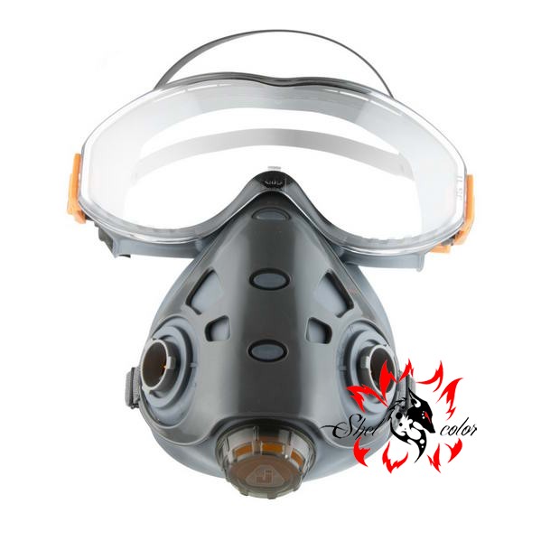 Компактная и легкая полумаска с встроенными очками. Идеальное решение для защиты зрения и дыхания в одном продукте. Интегрированная съёмная защитная линза из поликарбоната, выдерживающая удары частиц, летящих со скоростью 45 м/с.