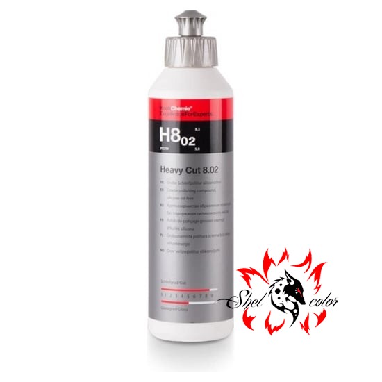 H8.02 Heavy Cut - крупнозернистая абразивная полировальная паста без силикона, предназначенная для устранения царапин, замутнений, потёртостей, красочных туманов и аншлифов до размера зернистости Р1500.