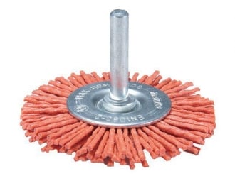 Торцевая нейлоновая щетка для дрелей 75 мм применяется для удаления ржавчины и краски с деревянных и поливинилхлоридных поверхностей (D-45593).