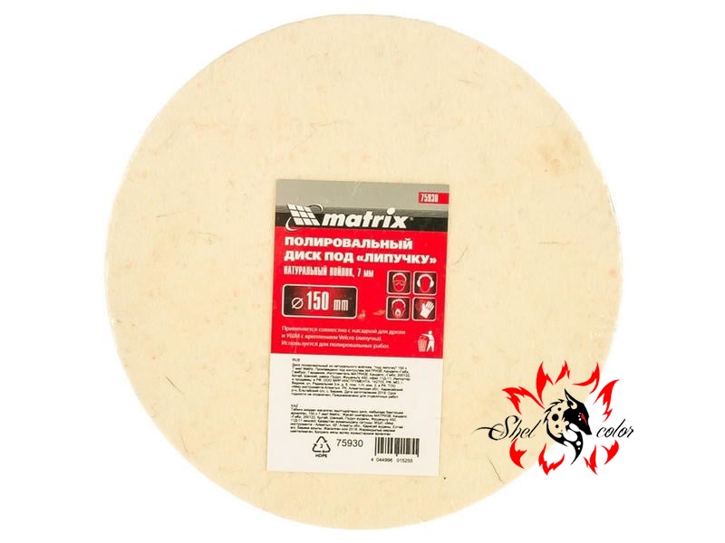 MATRIX Круг полировальный фетровый (войлочный), липучка 150мм x 7мм. Полировальный диск изготовлен из чистой шерсти. Используется совместно с шлифкругами и дрелью при полировальных работах.