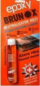Brunox epoxy - не содержит тяжелых металлов и минеральных кислот, имеет неограниченное время хранения, растворим в ацетоне, и других растворителях, не вступает в реакции с лакокрасочными покрытиями и грунт - шпаклевками.
