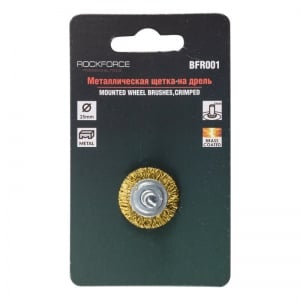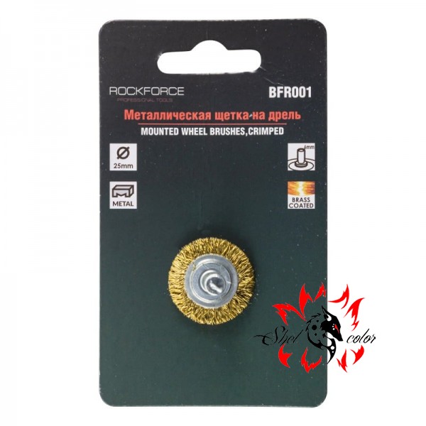 Rock FORCE Кордщетка дисковая (латунная) с хвостовиком для дрели 25мм