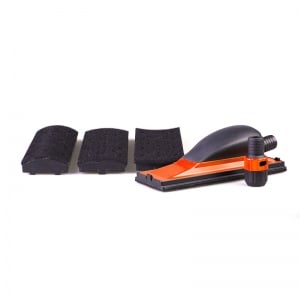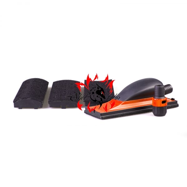 Этот ручной шлифовальный блок MULTI с системой пылеотвода разработан для обеспечения удобного и качественного шлифования как плоских, так и сложных изогнутых поверхностей. Универсальность достигается за счет использования четырех сменных накладок (подошв) с различной кривизной, которые крепятся к основному блоку на липучке (Velcro).