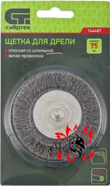 СИБРТЕХ Щетка для дрели, 75 мм, плоская со шпилькой, витая проволока