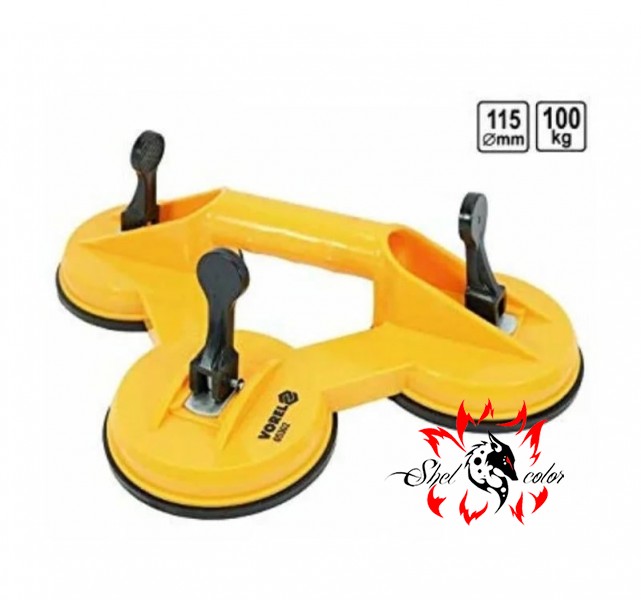 Благодаря трем мощным присоскам запускаемого через расположенные в ручке рычаги, обеспечивают мощный и уверенный захват. Отлично зарекомендовал себя при монтаже стекол (автомобильных), а также при перемещении и монтаже других больших и гладких предметов, например, долей оргстекла, столешницы и т. д.