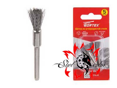 WORTEX Щетка из углеродистой стали 5 мм для бормашины, гравера, дремеля, набор 5 шт.