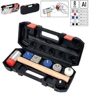 Наконечники выполнены из прочного материала PI, PUR. Головка молотка из сплава на основе алюминия прочно закреплена на деревянной рукоятке длиной 320 мм.