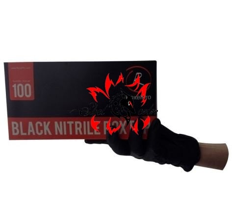 Гипоаллергенные, нитриловые, черные перчатки одноразового использования.