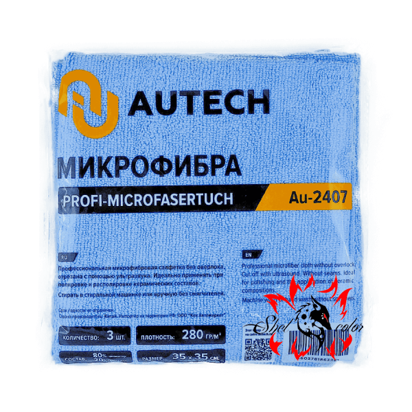 AuTech Микрофибра салфетка PROFI-MICROFASERTUCH 35х35 см, синяя без оверлока, 280 гр/м2., цена за 1 салфетку