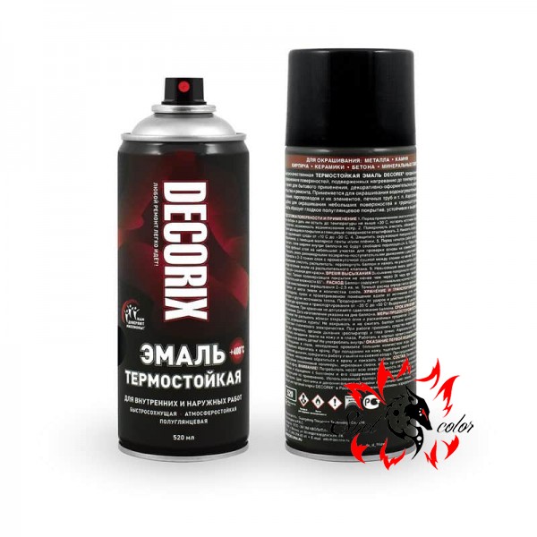 Высококачественная термостойкая эмаль DECORIX предназначена для окрашивания поверхностей, подверженных нагреванию до температуры +400°С, а также для бытового применения, декоративно-оформительских работ, строительства и ремонта.