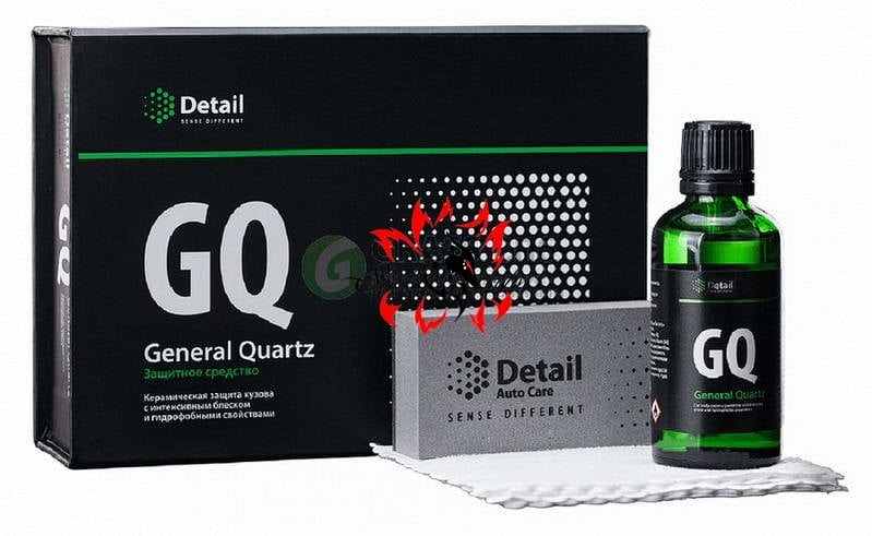 Керамическая защита кузова, придающая блеск и гидрофобные свойства. General Quartz (GQ) — самое продвинутое профессиональное защитное средство в линейке Detail Auto Care, которое обеспечивает максимально надежную защиту лакокрасочного покрытия, а также – зеркальный блеск, глубину цвета и придает гидрофобные свойства на длительное время благодаря содержанию SiO2. Гарантированная защита кузова автомобиля сроком до 2-х лет.