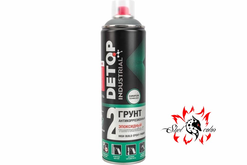 Эпоксидный толстослойный антикоррозионный грунт Detop серый, аэрозоль 650 мл DTI-A07677 - антикоррозионный эпоксидный толстослойный грунт применяется для защиты от коррозии металлических конструкций, транспортных средств, оборудования и других изделий, эксплуатируемых в условиях промышленной атмосферы, содержащей агрессивные пары и газы, повышенную влажность.