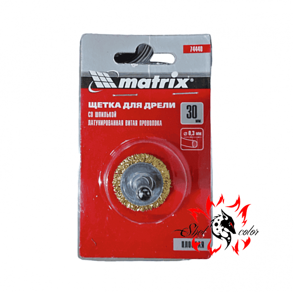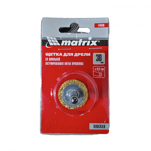 MATRIX Щетка для дрели, 30 мм, плоская со шпилькой, латунированная витая проволока