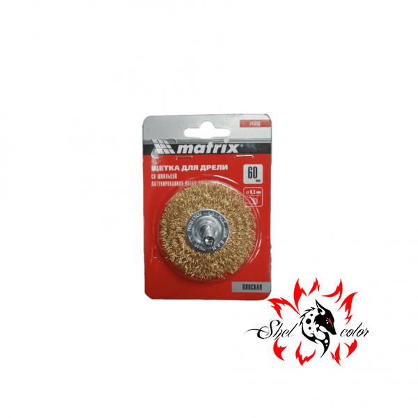 MATRIX Щетка для дрели, 60 мм, плоская со шпилькой, латунированная витая проволока