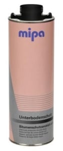 MIPA Антигравийное покрытие битумное Unterbodenschutz, cредство для защиты кузова, черное, 1 л — прочный антикоррозийный материал на основе воска / битума для шасси транспортных средств, въездных и колесных арок и т.д. Обеспечивает долговременную защиту от воды, соли, коррозии на углах, кромках, адгезионную прочность и эластичность. Имеет высокую стойкость к истиранию, образует твердый, термо- и шумоизоляционный слой, защищает от влияния атмосферных воздействий.