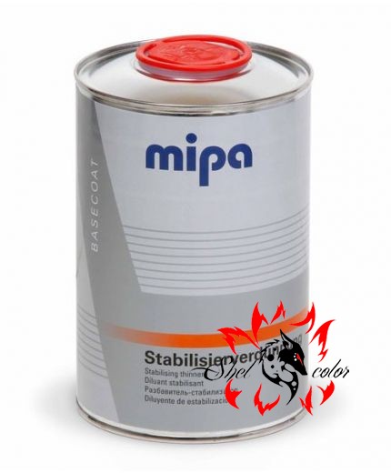 Mipa Stabilisier-Verdünnung 1л — специальный растворитель для базовых красок Mipa BC, используемых при двухстадийной покраске. Идеально подходит для избежания образования полос, помутнения и «облачности» («яблочности»). Разбавитель стабилизирует и закрепляет пигменты в компонентах с алюминиевым эффектом при нанесении на поверхность детали.