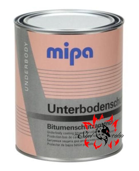 256810000 Mipa Защита кузова битумная Unterbodenschutz, антикор для арок и днища 1л. предназначен для защиты от коррозии днища транспортных средств, колесных арок и порогов, обладает шумопоглощающим эффектом. Наносится методом распыления, кистью или шпателем.