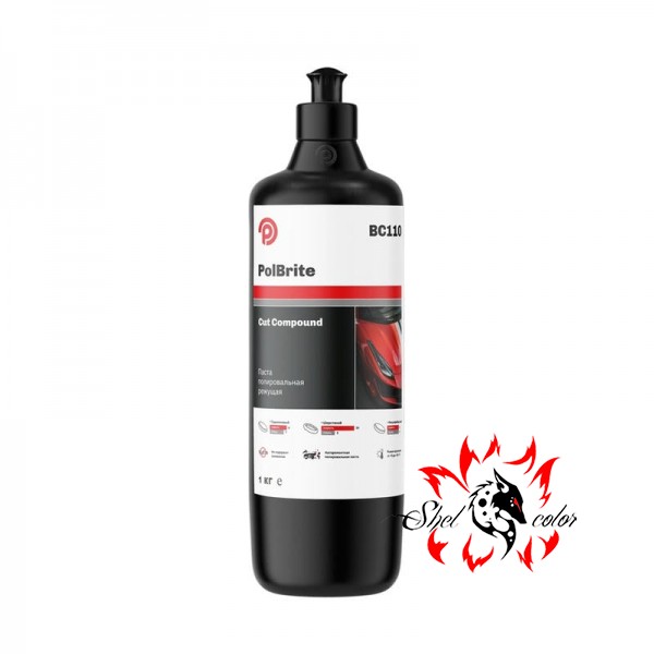 PolBrite BC110 Cut Compound паста полировальная режущая на водной основе без содержания силикона, предназначенная для быстрого удаления рисок после обработки ремонтного лакокрасочного покрытия абразивами градаций от Р1200. Состав пригоден также для устранения следов окисления и рисок, в том числе, образующихся на оригинальных лакокрасочных покрытиях при эксплуатации автомобиля.