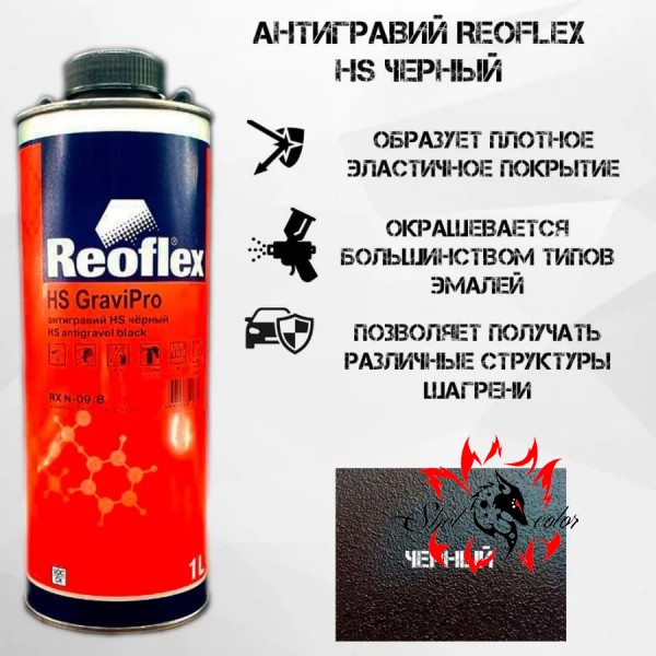 REOFLEX Антигравийное покрытие, cредство для защиты кузова GraviPro HS 1л. Антигравий HS предназначен для создания плотного эластичного покрытия,защищающего от ударов камней и воздействия бензина, масел, водыи солей, обладающего шумоизоляционными и антикоррозионными свойствами.