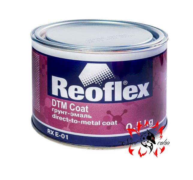 Reoflex Эмаль-грунт DTM-Coat, черный матовый, 0,5 кг. однокомпонентная акриловая грунт-эмаль (DTM - Direct To Metal) черного матового цвета объемом 0,5 кг. Применяется для защиты и окраски металлических, стальных и пластиковых деталей, обеспечивая высокую стойкость к ультрафиолету. Подходит для воздушной (до 30 мин при 20°C) и ускоренной сушки.