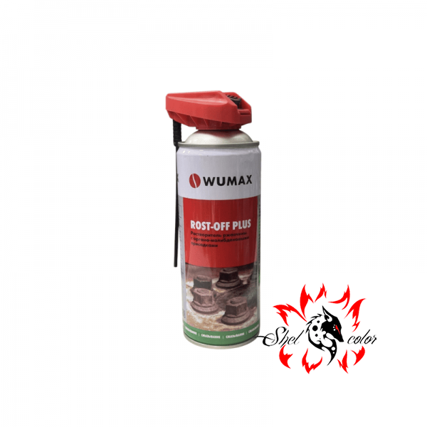 WUMAX Смазка жидкий ключ Rost-Off Plus 400 мл растворитель ржавчины - высококачественный растворитель ржавчины с эффектом смазки. Предназначен для разблокирования заржавевших и окислившихся резьбовых соединений, подвижных частей и элементов во всех видах техники, устройств и механизмов. Длительное время действия, в том числе и для поверхностей трения, испытывающих воздействия высокого давления и термических нагрузок, благодаря использованию присадки с молибденовым составом.